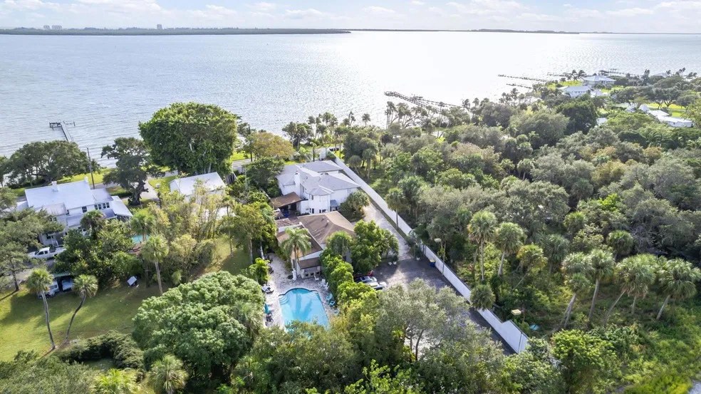 Welcome to Casa de Suenos-a sanctuary of serenity and sophistication, where luxury meets nature in perfect harmony. Nestled along the breathtaking backdrop of the Indian River Lagoon, this opulent estate offers lush botanical landscapes, serene fountains, and unmatched privacy.Enjoy the 10-foot deep Olympic-size pool, private boat dock with ocean access, a meditation Zen garden, and a state-of-the-art chef's kitchen. The home includes 5 luxurious en-suite bedrooms, 2 half baths, multiple covered patios, 3 wet bars, a separate carriage house apartment above the 3 car garage, and a cozy cabana sleep-away nook. The tennis/pickleball court is being refurbished for top-level play. Casa de Suenos is ideal as a private haven or Airbnb. Welcome Home to Paradise...Your dream escape awaits!