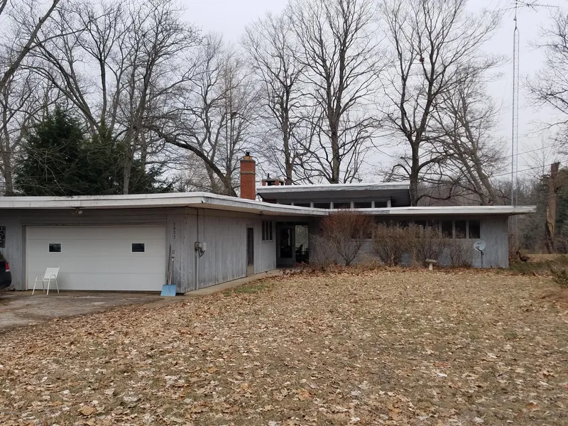 Come check out this semi-secluded, Frank Lloyd Wright inspired home on 120 feet of St. Joseph River frontage. Out the front door is a view of the 3rd green on Orchard Hills Country Club and out the back is an expansive, nearly 180 degree view of the St. Joseph River. This property boasts of 3 bedrooms and 1.5 baths. The large family room and dining area offer beautiful river views. As with the family room, the large kitchen offers a fireplace and large eat-in area. A covered patio runs along2/3rds of the rear of the house and offers unfettered views and access to the river. Between the kitchen and the full size 2 car garage are the utility room containing the mechanicals and the washer and dryer.