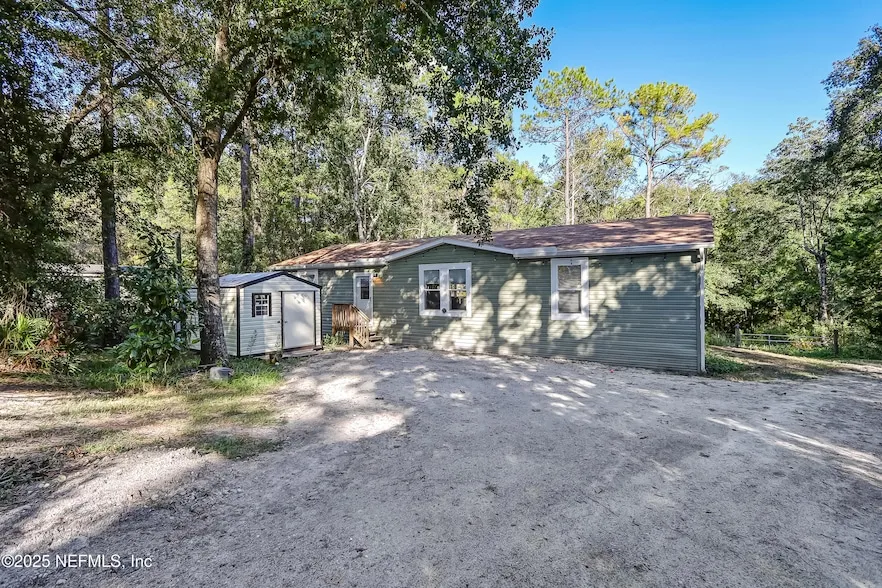 Immaculate 2023 TownHomes-brand manufactured home on a fully fenced 1.19-acre lot with an automatic gate! This 3BR/2BA home offers energy efficiency, privacy, and modern upgrades throughout. Features include LVP flooring (no carpet), stainless steel appliances, LED recessed lighting, low-e insulated windows, whole-home ventilation, 4-ton A/C, attic fan, and upgraded insulation with 2?6 outer walls?keeping bills low and comfort high. Exterior highlights include lap-down siding, gutters with French drain system, 10?12 shed (only a year old), 2 crawlspace access points, and a water softener system. Enjoy peaceful country living with easy access to Blanding Blvd, shopping, and dining. Move-in ready and built to last?schedule your showing today!