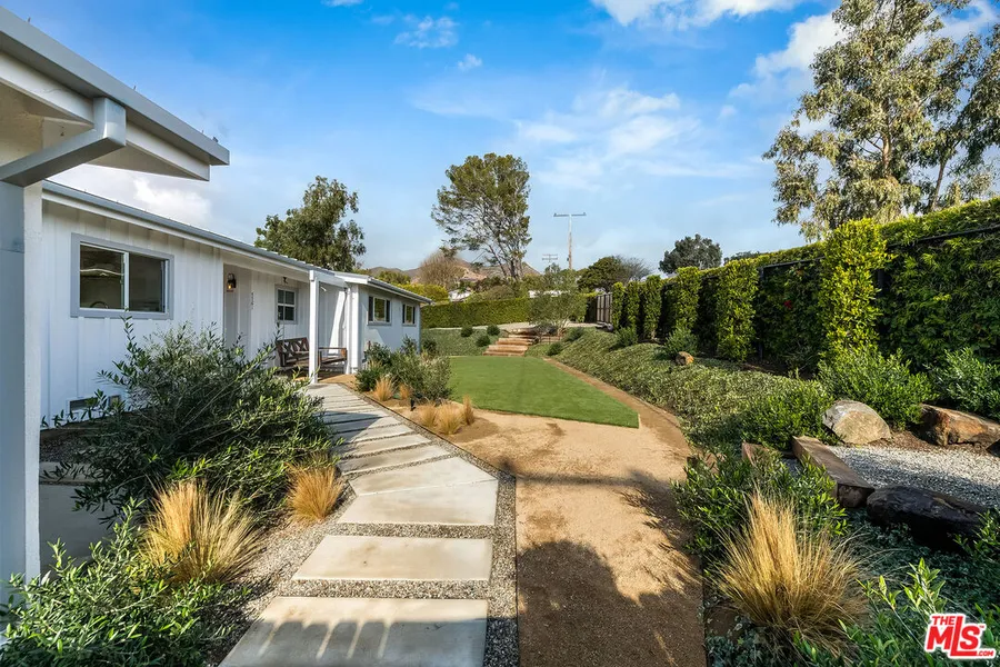 This beautifully redone one-story Contemporary Ranch home is located on one of the most quiet & tranquil cul-de-sacs in Malibu Park offering stunning ocean views and is set on over one acre of mostly usable land providing ample space for horses, a barn, a pool or plenty of space to build an ADU. The home features three bedrooms, including a spacious primary suite with ocean views and a large walk-in closet, two bathrooms, and a gym or home office. The open floor plan includes gorgeous hardwood floors throughout, a two sided fireplace that you can enjoy from both the living and dining rooms & fully approved plans and permits for a brand new deck off the backside of the house which allows apx. 1,100 sq ft of outdoor space perfect for enjoying the surrounding nature with views of Point Dume and Zuma Beach. The fully gated front yard boasts a lush lawn with beautiful landscaping, a big flat ...