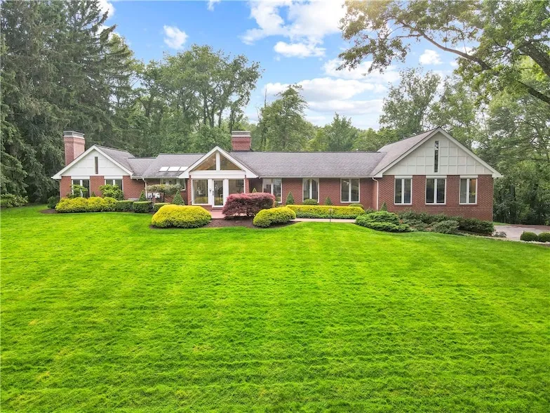 Be impressed by this sprawling contemporary ranch, over 5000 SF of versatile living space, all set on a level lot with 2 patios & a expansive backyard. Dramatic vaulted ceilings in the living&diningrms create a dramatic 1st impression, while a wall of glass brings in natural light offering picturesque views of the yard. The kitchen is sunkissed, boasting abundant white cabinetry, sleek black granite countertops, seating at the island, vaulted ceilings, skylight, walk in panty & comfortable breakfast area all open to the 1st flr familyroom, a gas fireplace creates a warm & cozy space. Glass doors lead to the patio. Room for everyone with 4 bedrms & 4.5 baths on the main level! Luxurious primary suite with huge walk in closet & spa-inspired bath. 1 of the guest bedrooms will surprise you with a loft space, a great teen retreat! Finished LowerLevel offers more space with a 5th bedrm, full b...