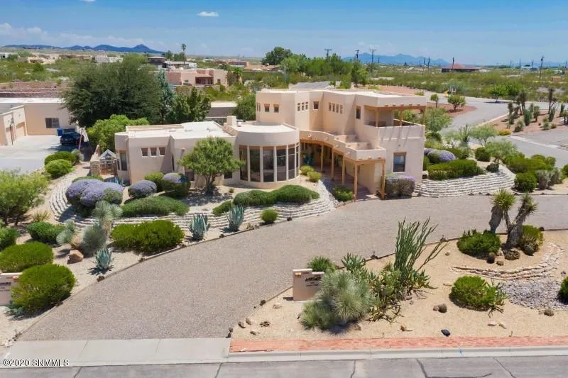 This Entertainers' Paradise sits on a premium corner lot featuring 4,841 square foot, 4 bedrooms, 3.5 baths, RV parking, 3 car attached garage and a detached garage. This custom Southwestern-style home has Saltillo tile floors, vigas, 2 large living areas ...one with a Kiva fireplace and 1 with a wet bar. The large kitchen offers plenty of room for entertaining with an adjoining eating area and breakfast bar. The owner's suite has a sitting area with access to a nice patio. The en-suite bath has double sinks, soaking tub and beautiful tiled shower with glass block. There is a junior suite upstairs with its own bathroom and patio with breathtaking views of the sunsets to the west. The resort like backyard has several areas for entertaining with numerous brick patios and gorgeous landscaping all on a drip system. Off of the 3 car attached garage is a 22' x 24' room that can be used as an office, hobby room, artist studio, or could be converted into a casita. The sellers have added an incredible garage