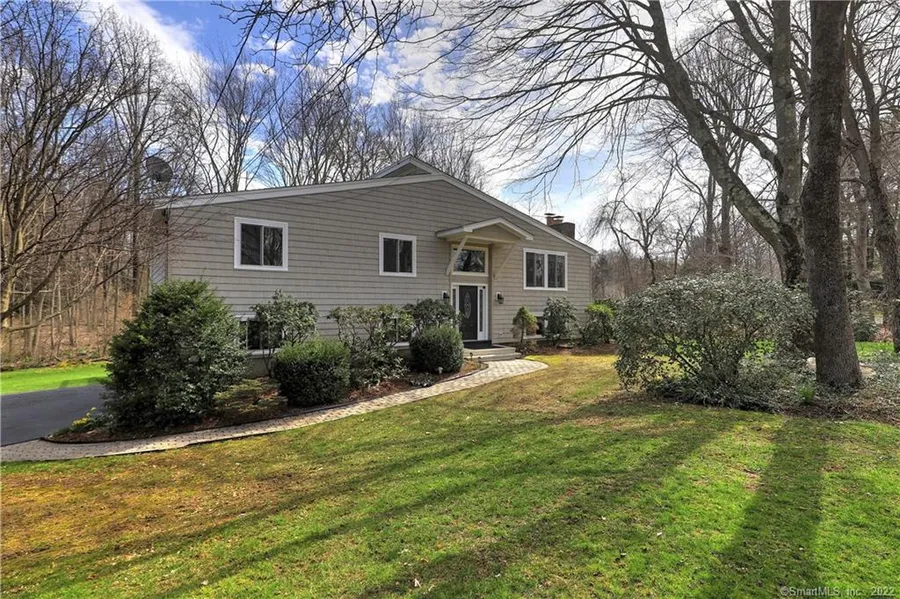 Not your average looking Raised Ranch home! This 1.20 acre, modernized Raised Ranch style home in Shelton, rests on a professionally landscaped level piece of property with a small brook in the back. Upon entering, you will immediately notice the openness of the two-story open foyer with all the natural light. The recently redone (2019) beautiful hardwood oak floors can be seen throughout the main level of the home. The open living room with its vaulted ceiling, gives the room a very spacious feel, cozy up by the fireplace and enjoy the custom-built ins. The open kitchen boasts white cabinets, stainless steel appliances (new refrigerator 2020), island that is open to the dining room, dining room has sliders to the rear deck and vaulted ceiling. Make your way down the hall to the sleeping quarters of the home, with 3 bedrooms -Primary Bedroom has its own full bath, vaulted ceiling and sliders to the rear deck, two additional bedrooms (one with vaulted ceiling), and a main floor hall full bathroom. The FINISHED lower level adds additional heated living space NOT INCLUDED IN THE MAIN LIVING AREA Sq Ft. Features a walk-out, additional full bath, storage, built-ins and is heated by electric baseboard. Highlights include: New roof (2011), Central AC, main floor laundry, 2 car attached garage, modern recessed lighting throughout, extra-large oversized wood deck in rear. Conveniently located to many shops, restaurants, and minutes away from Jones Family Farm and Winery.