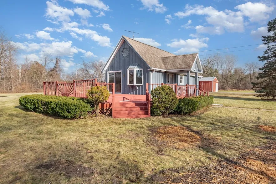 Here is your chance to buy this home with a remarkable 1.2 acre lot with 336' of frontage on Wixom Lake. Property is a high bank with a fantastic view and location on the lake. Home has two bedrooms on the main level with two living spaces. A large 17'x28' deck is a great spot to catch the evening sunset. Upstairs is a finished attic space that is great for storage or possible sleeping quarters. The basement houses the mechanicals and additional storage. Boiler is roughly 3 years old, roof is 5 years old, and the well and septic were replaced in 2010. Listing agent is related to sellers. Please refer to the Four Lakes Task Force website for latest information regarding the dam reconstruction.