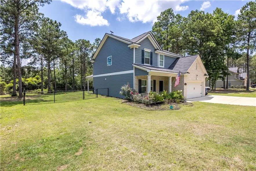 Welcome to this stunning 2-year-old two-story home offering 2,332 square feet of modern living space. Boasting 4 spacious bedrooms and 2 full bathrooms upstairs, this home is designed for comfort and convenience. The main floor features an inviting open-concept layout, highlighted by luxury vinyl flooring and granite countertops in both the kitchen and bathrooms. The kitchen, with its large island, seamlessly flows into the open dining and family rooms, perfect for entertaining. Additional features include a cozy front porch, a half bathroom downstairs, a covered back patio, a storage shed, and a two-car garage. Don't miss this exquisite blend of style and function!