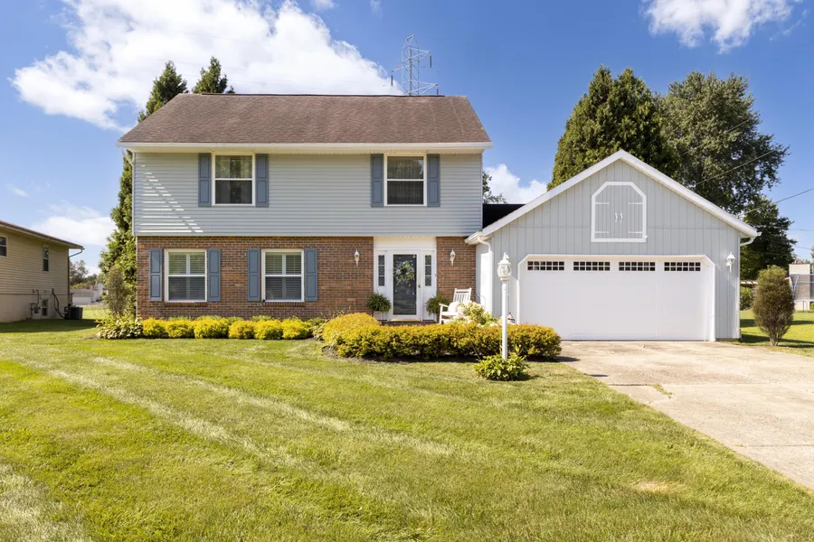 Showings start 8/29/22. This two-story home in Sherwood Downs features four bedrooms & 2.5 bathrooms all on 1.2 acres. Living Room has lots of natural light & leads into the Dining Room. Kitchen has custom cabinets, earthstone counters, appliances included, & window over sink overlooks the backyard. A sunken Family Room with custom made built-in bookcases & fireplace. French doors lead to the deck that overlooks the large backyard. Main bedroom suite features a double closet, a private full bathroom, & luxury vinyl flooring. Bedroom #2 has built in bookshelves. Professionally installed window shutters. Foyer has double door closet. Two-car attached garage. Newer furnace and central AC. Replacement windows. Vinyl siding painted two years ago. 14-Month Home Warranty offered. See A 2 A.