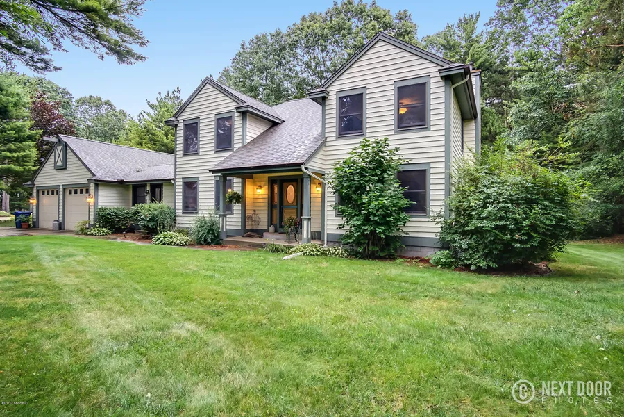 Tucked away on a beautiful wooded 1.2 Acre lot in Grand Haven township, this spacious home offers a quiet, peaceful setting. Quality constructed including plenty of space to enjoy the newly renovated kitchen with beautiful wood cabinetry, center island, and breakfast nook all adjacent to a comfortable family room featuring a wood burning fireplace and sliders to the backyard deck. Wood floors in the main living areas, a separate living and dining room plus a great office area with private entrance. Attached is a 4-STALL HEATED GARAGE - perfect for hobbies and extra toys! Fully cedar sided with a walkout lower level overlooking the backyard bordered by trees for full privacy. Great location on the bike path and close to the GH Golf Course, Rosy Mound and Buchanan beach!