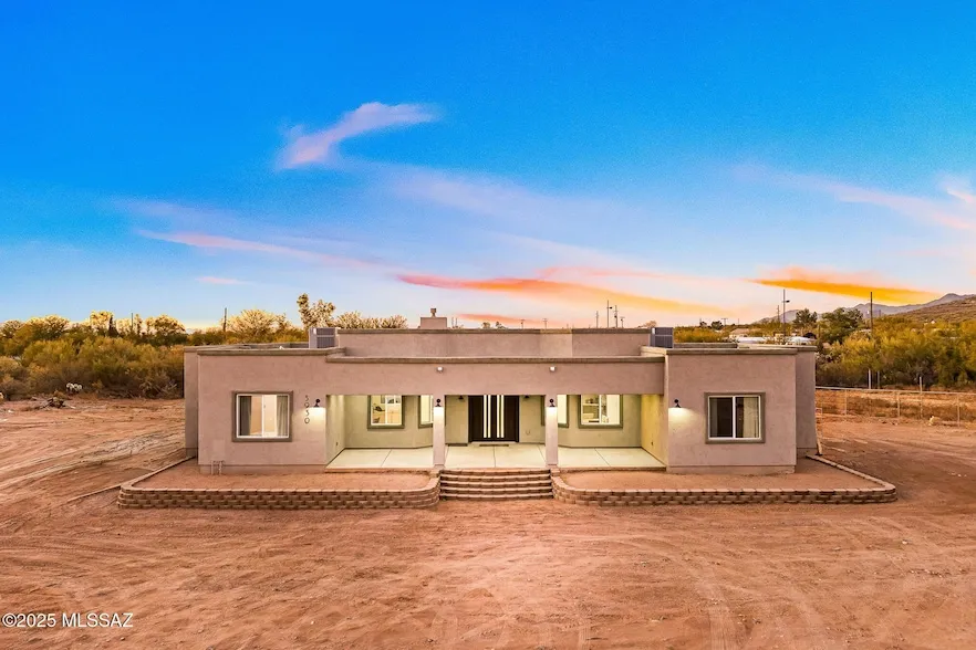 This is desert living at its finest on Tucson's Southwest side. This stunning 5-bedroom, 3-bath estate blends elegance, modern design, and ultimate privacy. Thoughtfully crafted with premium materials, it features soaring 10-ft ceilings, gorgeous tile flooring, and a chef's kitchen with a 36-inch gas cooktop, oversized island, and custom cabinetry. A formal dining room with a coffered ceiling, multiple living areas, and a cozy family room fireplace create a refined yet inviting atmosphere. The fifth bedroom offers versatility as an office, while a spacious laundry room adds convenience. Pre-wired for security, with a sprinkler system and covered front and back patios, this home is a serene retreat. Come see today!