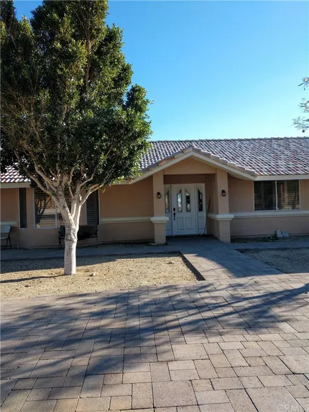 Classic Modern Desert Ranch Style Home. Is all of 3306 SQFT Being a 4/4Bed/Bathroom.Located on 1.2 Acres. With all scenic views of the Desert Valleys/Mountains. NEW remodel upgrade throughout the home, New Kitchen and bathrooms. 2 full floor to ceiling rock Fire places are located in the Living room and MasterBedroom/Masterbath. Lots of Closet space to place all your personal items. Great Expense on the Block wall surrounds the home adding value and private security. Very Private back yard with garden stepping stones, grass, and a golf pad turf. The new Cabana is fitted with ceiling lights for late night parties or for day parties and add more value for proper shade as you entertain family and friends. This home is a must show, with a Palm Springs Modern Style vibe.