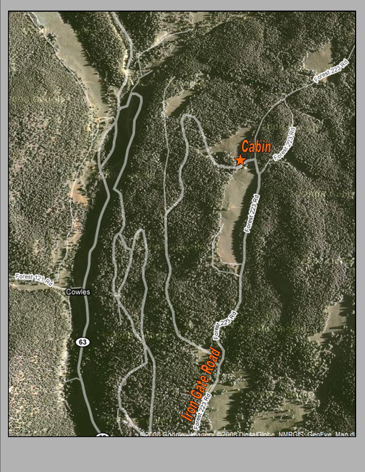 From Pecos, north aprox 18 miles, right on Iron Gate Road, aprox 1.5 miles on left just before cattle guard