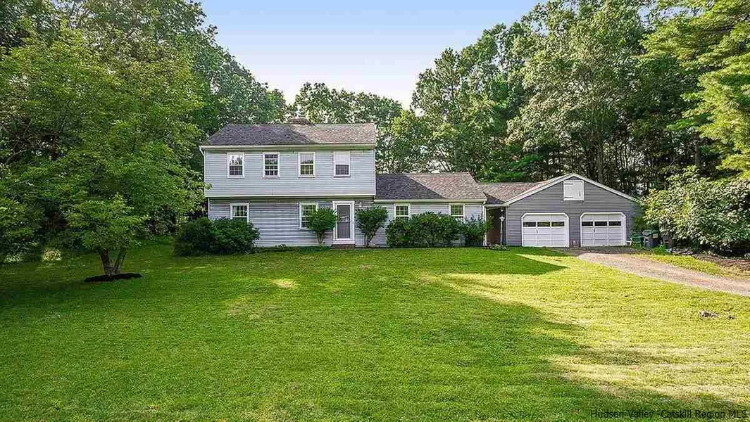Sunny, bright 4 bedroom home located in the neighborhood of Cherry Hill. The home features a spacious cooks kitchen with custom white oak cabinets, 3 large beautiful Pella windows and gorgeous rainforest green marble counters. There are 3 totally remodeled tiled bathrooms with Kohler fixtures, one off the primary bedroom. The living room features hardwood floors and a brick fireplace. The spacious downstairs great room could also be used as another bedroom or large office space. This home has a two car garage connected to the house by a breezeway; one of the garage bays was converted and used as a pottery studio and could be used for a wood or art workshop or for your second car. There is plenty of storage space available in the attic, the basement, and the garage attic. This house sits on 1+ acre with mature trees and a half acre side yard as your own secluded woodland... just sit back and enjoy the wild deer, turkeys, and birds that visit the property. The house feels very private yet is part of a safe and friendly neighborhood. The house is centrally located to all four schools; the middle school (with tennis courts, track, and playing fields) abuts the neighborhood. Minutes to SUNY, restaurants, the cinema, grocery stores, the bus station, and downtown. The house is in close proximity to hiking, biking, climbing, and swimming at the Mohonk Preserve, the River to Ridge Trail, or Minnewaska State Park. There is easy access to the paved rail trail that leads to the Walkway Over the Hudson or to the rail trail that goes to Gardiner or Kingston. Located only minutes from the Thruway, 20 minutes to Metro North in Poughkeepsie or to Kingston, and 90 minutes to NYC, this home is centrally located to all the Hudson Valley has to offer.