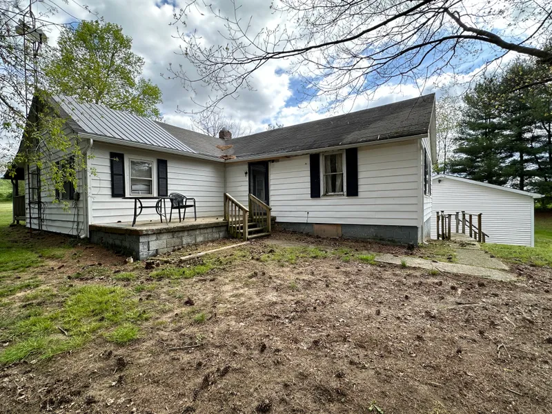 Beautiful 1.2 acres of land with house and garage located on Vires Rd in Hamden, Ohio. The house has some updates but would be considered a fixer upper. It offers 2 bedrooms, 1 bathroom, kitchen, laundry, dining room, large living room and unfinished basement that has interior access plus a walkout basement door. The home also offers an 8X16 front porch and an 8X36 covered rear deck. Plenty of storage room in the basement and detached 24X36 garage with two garage with two garage doors. The land features plenty of room for kids to play or animals to roam and several apple trees. Sit on the rear deck and watch the deer roam. The electric is 200 amp and service is Buckeye Rural. Jackson County Water, Rumpke trash and Frontier Internet. Please note: The hot water tank is not functional and the furnace and AC will need to be converted and or gas installed because it is currently supplied by a well on adjacent property but it will not transfer as part of the sale & will be disconnected.