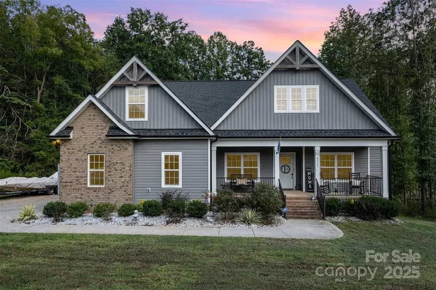 Tucked away in a quiet cul-de-sac, this beautiful home sits on a generous 1.21-acre lot in the highly desirable Sanders Landing community part of the top-ranked Clover School District. Designed with comfort and style in mind, the home features a spacious primary suite on the main level, an open floor plan with a cozy fireplace, and elegant coffered ceilings in the living area. Enjoy peaceful wooded views from your screened-in porch, perfect for morning coffee or evening relaxation. Luxury touches abound, including luxury vinyl plank flooring, quartz countertops, and a tankless water heater for energy efficiency. A variety of unique ceiling designs add character throughout the home. Upstairs, you'll find a private bedroom with a full bath ideal for guests as well as a large media room perfect for movie nights, a home office, or play space. If you re looking for privacy, space, and modern ...