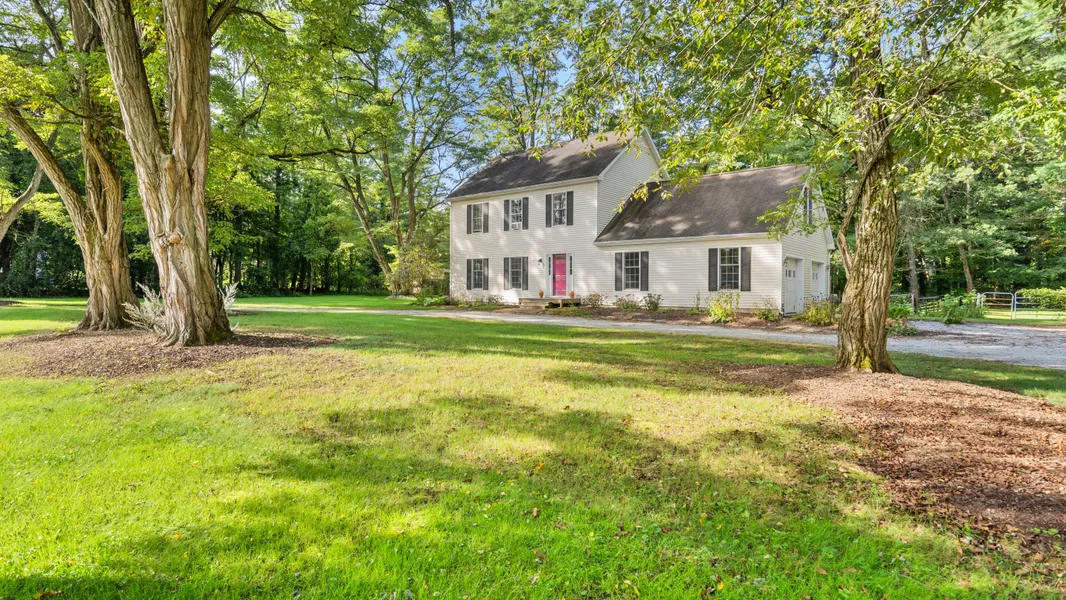 Beautifully Landscaped Yard + Move-in Ready Home + Extra Studio Living Quarters! Set on 1.2 serenely landscaped acres, with stunning locust shade trees, an inviting back deck, and a fire pit, this well-maintained 2000 colonial home is a rare find (especially at this price point.) The interior is warm and inviting, with great natural sunlight coming from large south-facing windows, and an open first-floor layout, with kitchen, living area, dining room, and powder room. A primary bedroom with en-suite bath is upstairs, along with two guest bedrooms and another full bath. A studio sits above a large two-car attached garage. The studio has its own private entrance, a 3/4 bath, and living quarters - ideal for guests or supplemental income!