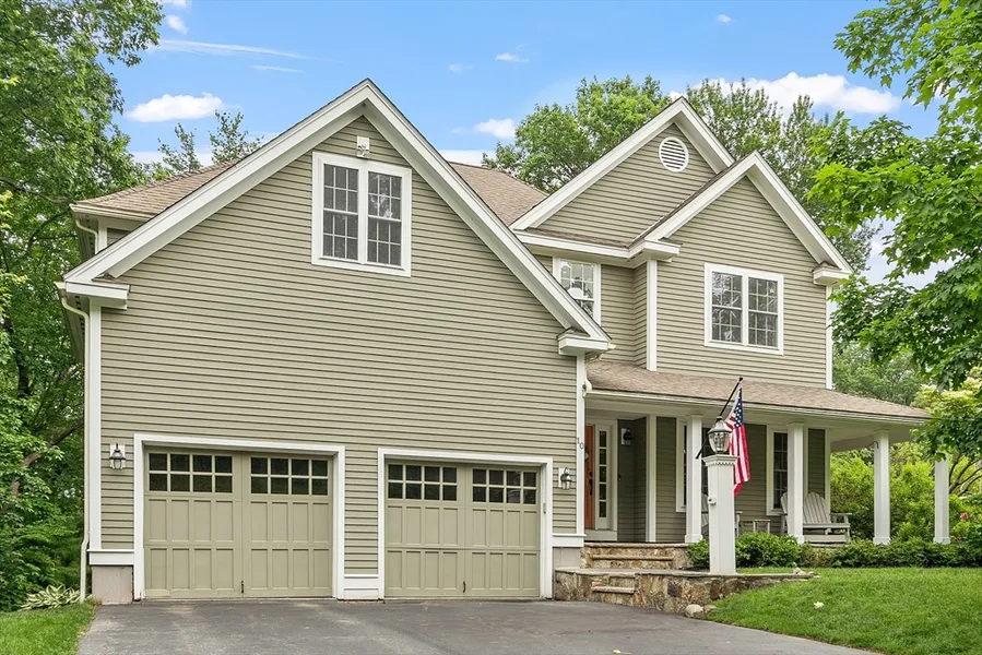 Stunning 4-bedroom, 2.5-bath Colonial nestled in the highly sought-after Little's Hill neighborhood of Georgetown. Thoughtfully designed, this home offers both elegant living spaces and modern convenience in an idyllic setting. Step onto the wraparound front porch and into a grand 2 story foyer that opens to an impressive great room. The chef's kitchen, features stainless steel appliances, granite countertops, double wall oven. Entertain in the dining room, cozy living room with fireplace, or step out onto the expansive deck overlooking serene, wooded views. Additional 1st floor highlights include a 1/2 bath, office, laundry room, mudroom, and access to a 2-car garage. The main bedroom suite offers a spa-like bathroom with jacuzzi tub, double vanity, shower, and walk-in closet. Three additional bedrooms and a full bath round out the 2nd floor. A partially finished basement includes a 2nd office, family room, and playroom. Set on a private lot in a quiet, prestigious neighborhood.