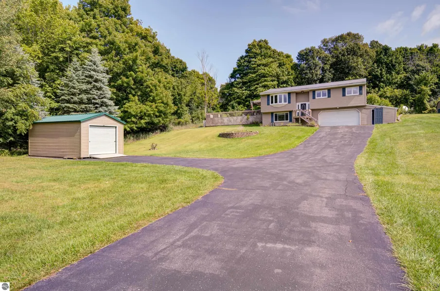 LOCATION, LOCATION!!! This home is located on Traverse City's East side. It is close to many amenities including, Sking, Boating, The Tart trail and all the shopping Traverse City has to offer. This home is situated on 1.21 acres, featuring 3 bedrooms and 2 baths with a possible 4th conforming bedroom in the lower level. Includes an above ground pool with a wrap around deck. Home includes 3 out buildings for all your extra storage. Very quiet location but yet close to Traverse City.