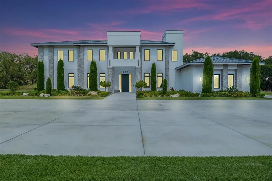 Welcome to the epitome of luxury living in the prominent Canterwood community. This one-of-a-kind custom-built modern home offers 4 bedrooms and 6 baths on just over 1 acre of land, boasting 8,100 SqFt of living space that seamlessly blends indoor and outdoor living. Upon entry, guests are greeted by soaring 24ft ceilings in the great room, setting a grand tone for the residence. The first floor features formal living and dining rooms ideal for extravagant gatherings, along with a 19'x17' sports/media room complete with a wet bar. The gourmet kitchen, equipped with GE Caf appliances including three ovens, a built-in coffee maker, a built-in microwave, a professional gas cooktop, and a Sub-Zero refrigerator, caters to culinary enthusiasts. Additionally, the property contains a first-floor flex room as well as a primary suite with a prodigious walk-in wardrobe. Hop on the elevator to explore the second floor where you'll find an additional primary suite, a gym, and a guest bedroom. Experience true Floridian outdoor living year-round with a heated pool, infinity spa, swim-up bar, cabana, and outdoor kitchen, all adorned with charming gas lanterns. The property also offers a 3-car garage with 2 electric vehicle charging stations for added convenience. This home is controlled with a Control 4 System allowing for expedient household management enhancing comfort and efficiency. Last but not least, this home possesses paid-in-full solar panels, significantly reducing your electricity bills and exemplifying eco-conscious living. Additionally, it features a 500-gallon propane tank that is fully owned, ensuring uninterrupted access to propane for various household needs. Don't miss out on the opportunity to see this exceptional home. Book your tour today and experience its grandeur firsthand.