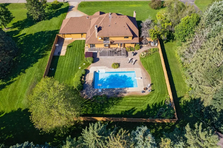 Wonderful 2 Story on a beautiful 1.2 acre lot! Highly sought after 'prairie area' of North Oaks close to the recreational center. Cherry cabinets, granite & stainless steel appliances. Amazing library/executive office with custom built ins. Four spacious bedrooms upstairs. In ground pool, paver patio, iron wood deck, hot tub and privacy fence. Lower level entertainment area. Only 15 mins to both downtowns. Award winning Mounds View Schools.