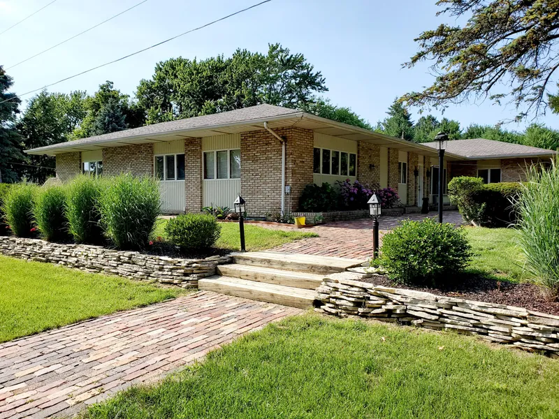 A long tree-lined beautiful brick mid-century home on a private 1.2 acres lot in Shoreham Village. This home offers 4 bedrooms, 3 full baths, an open floor plan with a spacious living room, a dining area, and a large kitchen. Great flow to a large family room, a guest bedroom/ office. Enjoy the four-season room overlooking a gorgeous backyard and a beautiful in-ground swimming pool area, large gazebo, and fire pit area perfect for entertaining. Beautiful landscaping, 2 car garage with extra space for a workshop. Supersize laundry room off the garage with a full bath, great space for storage. The basement has a recreation room and workout room area with an office den. Relax and enjoy amazing sunset vistas over Lake Michigan from the neighborhood's private overlook.