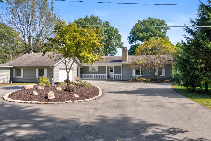 Here it is! Don't miss this wonderful, waterfront, ranch-style home nestled on the west shore of Lime Lake. You'll love the spectacular views as you enjoy your morning coffee. The 1936 sq. ft. main level, features three bedrooms, one bath, dining room, kitchen and a family room with fireplace. This room overlooks an expansive backyard and 100 feet of private lake frontage. Additionally, the master bedroom includes a slider to a screened-in three season porch. The lower level offers a ¾ bath, a large family room, a kitchenette, another cozy family room with fireplace, as well as an office/library room. Included with this property is an L-shaped 68ft. dock, a 2-stall detached garage, and a 40 x 24 pole barn with workshop featuring 220v power. The terraced yard includes two separate patios perfect for hosting family gatherings. Lime Lake is an all-sports, 36 acre lake featuring wonderful fishing and boating. Located just 20 minutes from downtown Grand Rapids, this home offers a perfect blend of tranquility and recreation. Come see it today!