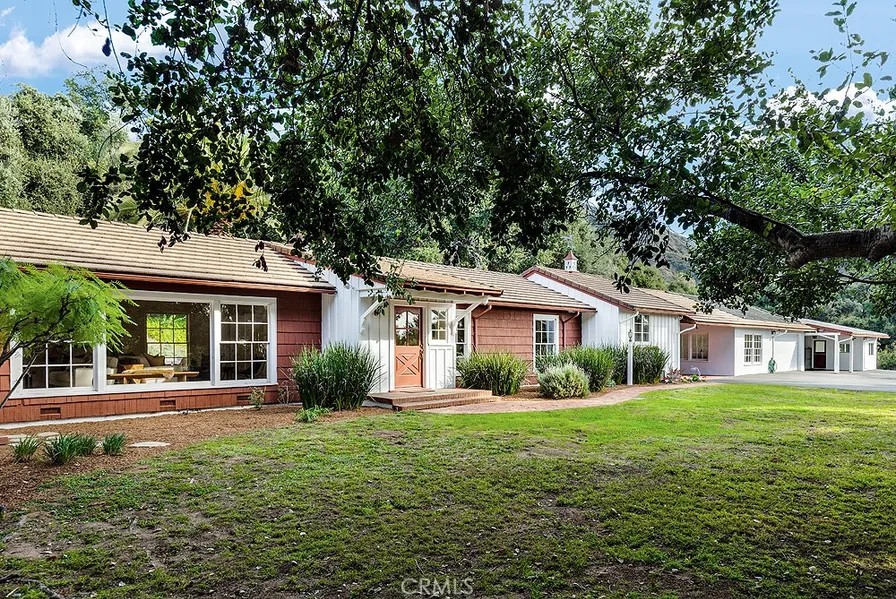 This magnificent one-of-kind property offers the utmost in serenity and privacy. The driveway greets you with a canopy of mature oak trees as you enter the 1.2 acres nestled in the desirable Kinneloa Mesa neighborhood. Outside boasts opportunities for enjoying nature with the beautiful mountain, canyon, and city views. Relax on the private and sprawling front lawn. Entertain in the backyard, with the inviting pool surrounded by a large natural stone deck. Discover plentiful mature fruit trees. For the equestrian enthusiast, a horse corral and stable are included. Enjoy the convenience of a two-car carport adjacent to the kitchen entrance, as well as a two-car garage and large parking area. Inside the main 2,756SF house you will find a formal entry, two generous bedrooms, dining/family room, kitchen with eat-in bar, and laundry room. The large living room features gleaming peg and groove wood floors, crown molding, and gas fireplace. The dining/family room has a lovely beamed ceiling, wainscoting, built-ins, new carpet and wood burning fireplace. The ensuite primary bedroom is generous and includes a luxurious bathroom with a separate shower, jetted bathtub and adjacent spacious walk-through closet. The second bedroom has a large self-lit closet. The separate laundry room has a utility sink, large pantry and is connected to a three-quarter bathroom. Additional space includes a guest house, bonus room and large storage area. The guest house has one large room and a three-quarter bathroom offering flexibility for guests or a private retreat. The bonus room/art studio is equipped with washer/dryer/sink hookups and has an abundance of natural light. There is a large storage room across from the bonus room. Additional amenities include keyless entry, 5.1 Surround Sound system in family room and whole-house inside/outside speaker, Ethernet, and is wired for a Wi-Fi system. Two-zoned central HVAC ensures overall comfort year-round. Solar for electricity and solar heated pool-contributing to efficiency and sustainability. Many rooms throughout the house have floor-to-ceiling windows capturing the beautiful natural surroundings. Meticulously refinished hardwood floors, crystal doorknobs and fresh paint inside and outside add elegance to the home. This property is a true oasis of tranquility welcoming you to make it yours.