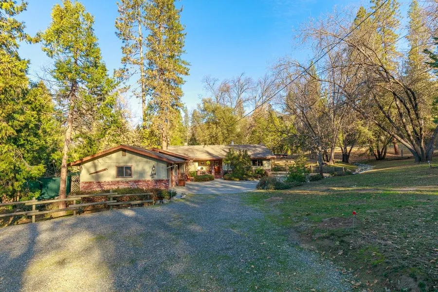 Check out this very charming home located a the end of a cul-de-sac, feeling very secluded but yet being a part of a wonderful neighborhood in the beautiful Ponderosa Basin. As you walk into this lovely turn key home, you will get a feel of warmth and solitude! This home features 3 bedrooms, 2 beautiful baths on just about an 1 1/4 acre with a beautiful seasonal creek and man made small water pond. Enjoy the sounds of water flowing in the very private tree filled back yard with seclusion and serenity all around you. This back yard is a place to relax, reading a good book or just enjoy bird watching as there are a beautiful variety of trees! The back of the home backs up to a large parcel with no homes behind you so you do feel very secluded and free to enjoy the wildlife or whatever it is that brings you peace. The home is wired and ready for a generator, with 2 garage spaces for the handyman or hobbyist. This home also features a gated area for your dogs or animals. Granite countertops are featured in the spacious kitchen area. The 3rd room in this home can be used for an office, play room for the kids or a workout room as it is oversized and very spacious. Lastly, this home has a home security system, see who comes and goes, there is so much more to talk about! Call me for more details on this beautiful home located in historical Mariposa, close to magnificent Yosemite National Park!