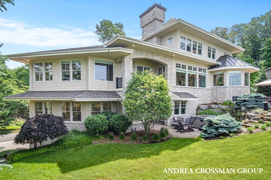 Stunning Lake Michigan home with amazing Lake views and 109 ft. of private frontage. The graceful landscaping invites you in to several outdoor entertaining areas including an outdoor fireplace, hot tub off the patio, and fire pit overlooking the Lake. Main level living space with a remodeled gourmet kitchen, master suite, master bath with steam shower and soaking tub, and several sitting areas. An elevator provides easy access to the multiple floors. The lower level features include a billiards room, living room, kitchenette with bar area, and laundry. The upper level provides additional living quarters with a guest suite, 2 bedrooms, full bath, and a charming sleeping alcove. The spacious floor plan flows seamlessly together to create comfortable and inviting living spaces throughout. Equipped with a new steel seawall and beach stairs, enjoy the sandy area to bathe in the sun & take in...