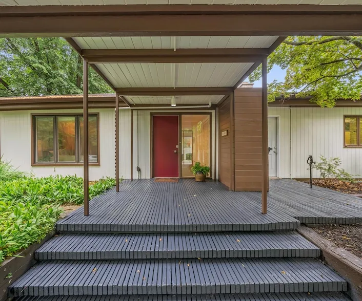 This Mid Century Modern, designed by Robert Metcalf, is a stylish retreat like no other! Nestled into a wooded hilltop setting adjacent to Braun Nature Area, this open and airy abode has been freshly painted and nicely updated while maintaining its original integrity. The expansive living room with fireplace and vaulted Walnut-paneled ceiling opens to the family/gathering and dining area and has sweeping views of the resort-inspired yard through the 24' glassed wall with sliding doors. The Galley is absolutely classic, Sub-Zero refrigerator and new counters. The adjacent laundry room has a second Sub-Zero. Five bedrooms offer terrific options for work-from-home spaces, too! Out back is the gunite pool and pool house that beckon family and friends for backyard bar-b-ques and entertaining! Home Energy Score of 3. Download report at .
