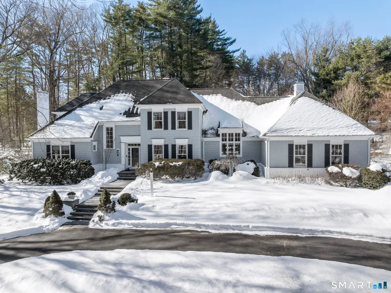 Welcome to 29 Sunset Farm-this stunning 5-bedroom, 4.5-bath home truly has it all. With exceptional curb appeal, a circular driveway, and a picturesque setting just minutes from town center, this home offers spacious, sun-filled living throughout. Inside, high ceilings, beautiful millwork, rich hardwood floors, and thoughtfully designed spaces showcase impeccable attention to detail. The formal living room with fireplace and elegant dining room are perfect for entertaining and everyday enjoyment. An open floor plan and incredible natural light create a bright, welcoming atmosphere. The first-floor primary suite features vaulted ceilings, a newly renovated bath, two walk-in closets, and French doors to a gorgeous patio. A dedicated first-floor office with built-ins and a fireplace makes working from home a breeze. The spacious kitchen flows seamlessly into the inviting family room with a coffered ceiling and fireplace, both offering direct access to a bluestone patio with pergola-ideal for outdoor living and entertaining. A mudroom/laundry room completes the main level. Upstairs are four additional bedrooms and three full baths. The large finished lower level offers flexible space for recreation, a gym, or hobbies. An oversized three-car garage with electric charger adds convenience. Located in a sought-after neighborhood, this exceptional home blends comfort, style, and craftsmanship-don't miss it!