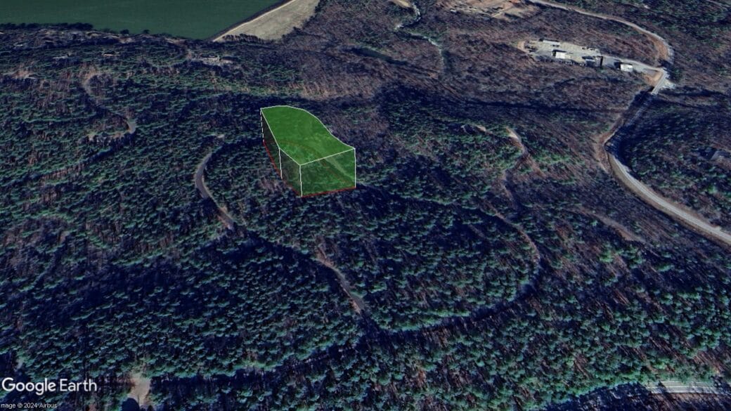 Coordinates: NW corner: 34.6507, -92.9530 (Road) NE corner: 34.6505, -92.9524 (Road) SW corner: 34.6498, -92.9525 SE corner: 34.6500, -92.9521 (Road)