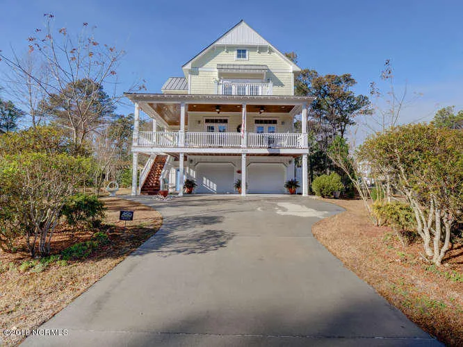 Enjoy the coastal lifestyle IN style. This exceptional home offers 1.23 acres of privacy that's unique to our area (3 subdividable lots). Take your elevator from the ground floor to the living area, offering open concept living, dining, den and kitchen areas; an entertainers dream. High quality features include metal roofing, bamboo floors, granite counters/vanities, built-in's, 9' ceilings, decorative trim work, outdoor shower! The ground floor provides 538 sq/ft of additional living not included in the total sq/ft (there is interior access). The top floor master suite provides a luxury bath and plenty of storage. This high quality home is ready! Note for separate/optional purchase: Your very own 30' deeded slip with a 10k lb. lift just steps from your door; golf cart included.