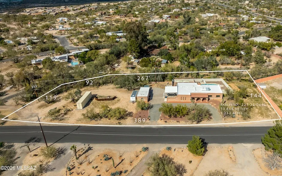 Seller will accept, or counter offers between $845,000-$885,000. Welcome to this exceptional Mesaland property located in the Amphitheater School District, offering space, flexibility, and beautiful Catalina Mountain views. Set on 1.23 acres with sweeping views of Pusch Peak. The main residence offers 2,985.5 square feet of living space with 3 bedrooms and 2 full bathrooms, plus two bonus rooms currently used as an additional bedroom and an exercise room. This flexible layout is ideal for guests, home office space, or multi generational living. A spacious family room with a wood burning fireplace creates a warm gathering space, while the open concept kitchen flows seamlessly into the main living areas, perfect for everyday living and entertaining. Additional interior highlights include a de Additional interior highlights include a dedicated mudroom, laundry room, and brand new windows throughout. The property also features a 348 sq ft casita with its own private carport, ideal for guests, tenants, or a private workspace. Outdoor amenities include a pool, expansive open land, and a large storage container offering ample space for equipment, tools, or hobby use. As a horse property, this home allows you to enjoy a rural lifestyle while remaining close to city conveniences. According to the CC&Rs, business use is permitted on this lot, adding flexibility for buyers seeking a live work lifestyle. The property is sewer connected. This home offers privacy, land, and mountain views while still being conveniently close to shopping, dining, schools, and major roadways. A rare opportunity to own a versatile Tucson property offering acreage, casita living, and horse property potential in Northwest Tucson.