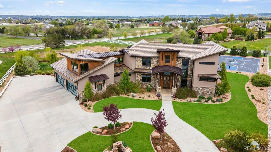 Welcome to your luxurious retreat in the coveted Spruce Meadows neighborhood. This contemporary mountain-style home showcases unparalleled craftsmanship and attention to detail. Vaulted ceilings create a grand, spacious atmosphere, while walnut floors throughout the home, including the primary bedroom, add warmth. The gourmet kitchen is a chef's dream with Jenn-Air appliances, granite countertops, main and prep sinks, 2 dishwashers, 2 oversized islands, microwave/speed cooker, warming drawer, wine fridge, ice machine, and induction stove. The main-floor primary suite includes a cozy seating area, fireplace, a lavish bath with radiant floors, steam shower, freestanding tub, and dual sinks, and a grand walk-in closet with built-in dresser island and floor-to-ceiling shoe racks. The 4-car garage features 2 EV charging stations and ample storage. The polished concrete walk-out basement offers a full kitchen, home gym, bedroom, and bath. Upstairs, 3 en-suite bedrooms with walk-in closets and a loft with built-in desk and shelves provide space for relaxation. A dedicated office includes built-in storage and a half-bath. The backyard is perfect for entertaining with a lighted full-court basketball court with pickleball lines, a large TimberTech deck, sunken patio, and natural gas hookups for a grill and fire pit. The rounded driveway adds curb appeal. Experience luxury living at its finest-schedule your visit today.