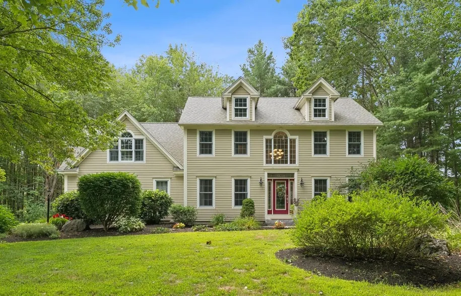Located in a quiet Falmouth neighborhood is 2 Surrey Lane, a spacious and beautifully maintained Colonial style home. Minutes to local schools, shopping, and recreation, and only 15 minutes to downtown Portland you'll be in the best of both worlds enjoying private neighborhood living with access to city amenities. This home offers over 2,800 square feet of living space plus additional finished space in the walkout daylight basement. With 4 bedrooms, 2.5 baths, and multiple living areas, there's room to suit everyone's lifestyle. You'll be welcome through the grand foyer with high ceilings and striking windows to let in natural light. Enjoy an updated eat-in kitchen with granite countertops and a convenient hall pantry, a connected formal dining room, and a living room with cathedral ceilings and a statement stone fireplace, this floor plan is designed for both easy entertaining and comfortable everyday living. A first-floor den near the front entry makes an ideal office or sitting room, and the mudroom off the attached two-car garage includes a half bath, laundry area, and tile flooring for everyday function. The primary suite offers a spacious full bath including a soaking tub, separate shower, double vanity, and two walk-in closets. Three guest bedrooms and a full guest bath complete the second floor. The finished walkout basement provides great bonus space for a family room, playroom, or gym with completely carpeted floors for added comfort. Additional highlights include a whole-house generator, and a 1.24-acre private lot surrounded by natural beauty at the end of a peaceful road, a rare find in this convenient Falmouth location.