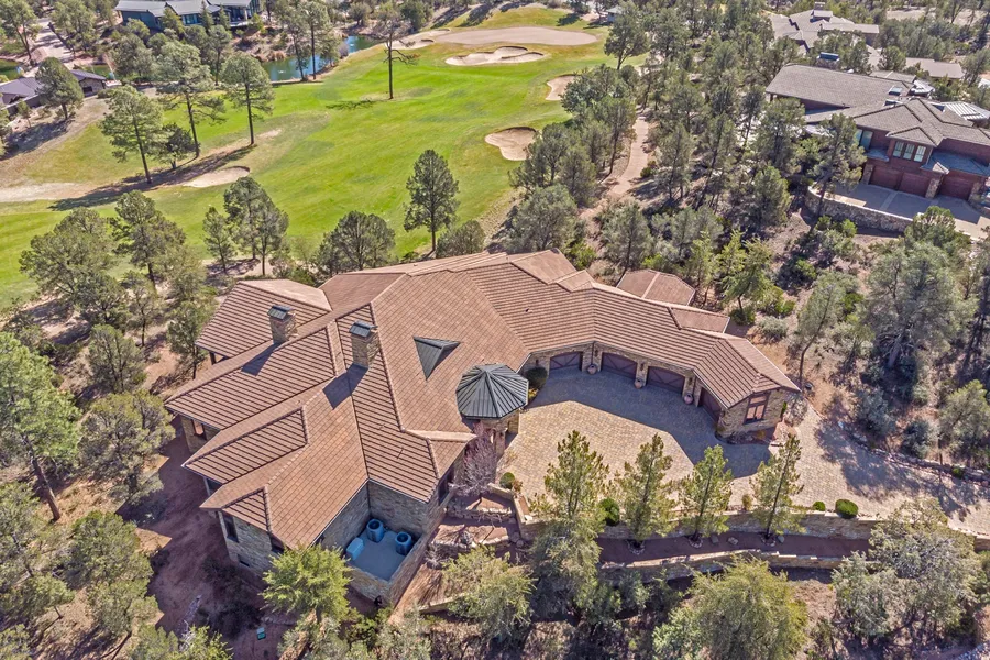 Escape to the perfect golf retreat set in the cool pines of The Rim Golf Club. This impeccable Mountain home offers single level living on the 5th fairway with a lake and Mountain views. Unique and one-of-a-kind this custom-built residence is a rare single level. Enter the home from the copper roofed front porch through the impressive large entry, tiled and solid hardwood walnut flooring, large beams, vaulted tongue & groove ceilings, stone fireplace, floor to ceiling windows with pocket door slider system that slides into the walls with electric screen. Enjoy the bar area with granite countertops, seating, ample shelving and storage, half dishwasher, ice maker and beverage cooler. The open concept with gourmet kitchen, gorgeous granite countertops, sub-zero refrigerator, dual sub-zero refrigerated drawers, ice machine, Wolf six gas burner and pancake stove top with dual ovens, warming d...