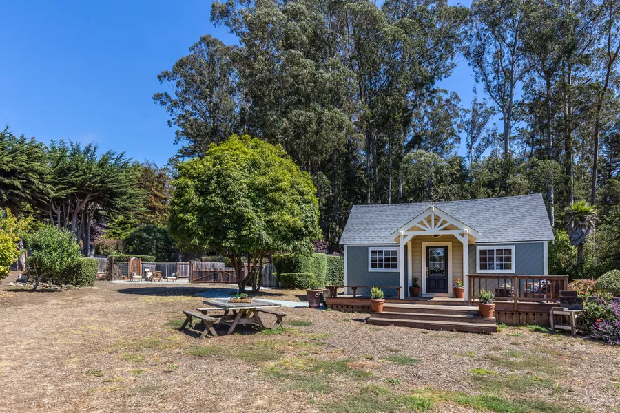 565 Miramar Drive is a two bedroom and two bath country home with storybook Carmel charm set on 1.24 acres located blocks from the beach in Half Moon Bay. It offers the best of coastal and country living while being close to everything you need. Plenty of room to work from home with two separate potential office spaces. Soaring ceilings, pine clad walls and two charming stone fireplaces in the living room and primary bedroom create a cozy atmosphere. Set on over an acre of land with an orchard, barn and studio space allows plenty of room for gardening, animals or other hobbies and provides a respite from everyday life with space and privacy. An existing accessory dwelling unit needs repair but offers potential extra living space or income. Views of Pillar Point and the Pacific Ocean from the rise above the ADU and the upstairs loft are an added bonus. Perfect for full time living or a weekend or vacation retreat from the San Francisco Bay area.