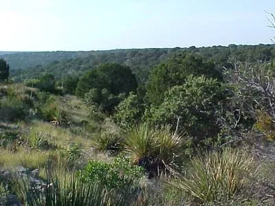 Native grasses & forbes. Mesquite, cedar and hackberry.