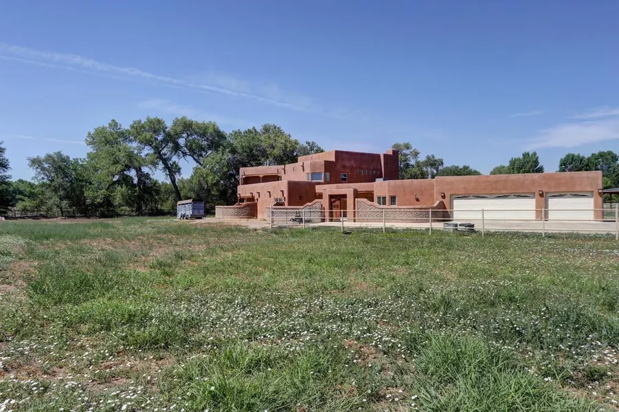 Looking for Room to Roam? This Gorgeous Southwest custom home offers plenty room inside and outside on its 1.25ac lot nestled in the Bosque with Huge Cottonwoods, Horses welcomed, cooks Gourmet Kitchen, large eat in area, formal dining, two master suites, 3 beautiful fireplaces, radiant in floor heat for those chilly days, refrigerated A/C, built-in vac system, tank less hot water heater, Large Balcony off master with Mountain Views, all with in minutes from Airport and Downtown Abq.