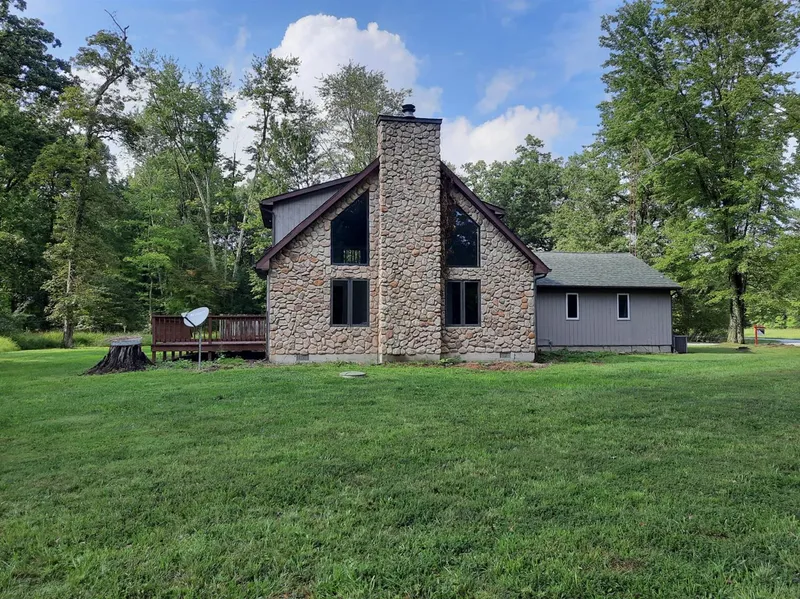 Your own private Pool, in a Lake Community w/amenities & sitting on 3 wooded lots 1.25 ac, a 3 bdrm Chalet home w/floor to ceiling stone gas fireplace, all new flooring, doors, including attached 2 car garage. This is a great full time home, but well suited for a weekend retreat. New appliances, Loft area, 2-1/2 baths, 1st floor laundry & master suite, 3 deck areas for a peaceful retreat. Move in at closing!