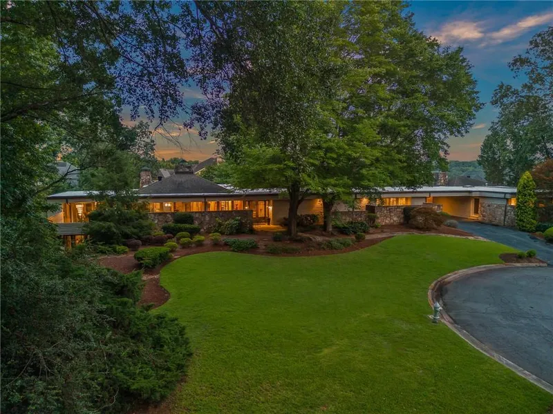 Discover an extraordinary home, a true masterpiece of architectural ingenuity, inspired by the visionary designs of Frank Lloyd Wright and meticulously crafted by Atlanta's own Robert Green. Nestled within the prestigious Atlanta Country Club on an expansive 1.25-acre cul-de-sac lot, this residence and its accompanying guest house are a testament to timeless design and a seamless fusion of indoor and outdoor living. The main house, erected in 1974, and the guest house, added in 1987, have remained in the same family, presenting a once-in-a-lifetime opportunity to own one of the most sought-after lots in Atlanta Country Club. These homes have been thoughtfully designed not only to captivate the eye but also to profoundly enrich the lives of those fortunate enough to call them home. The influence of Frank Lloyd Wright's design principles is unmistakable in the organic and enduring architec...