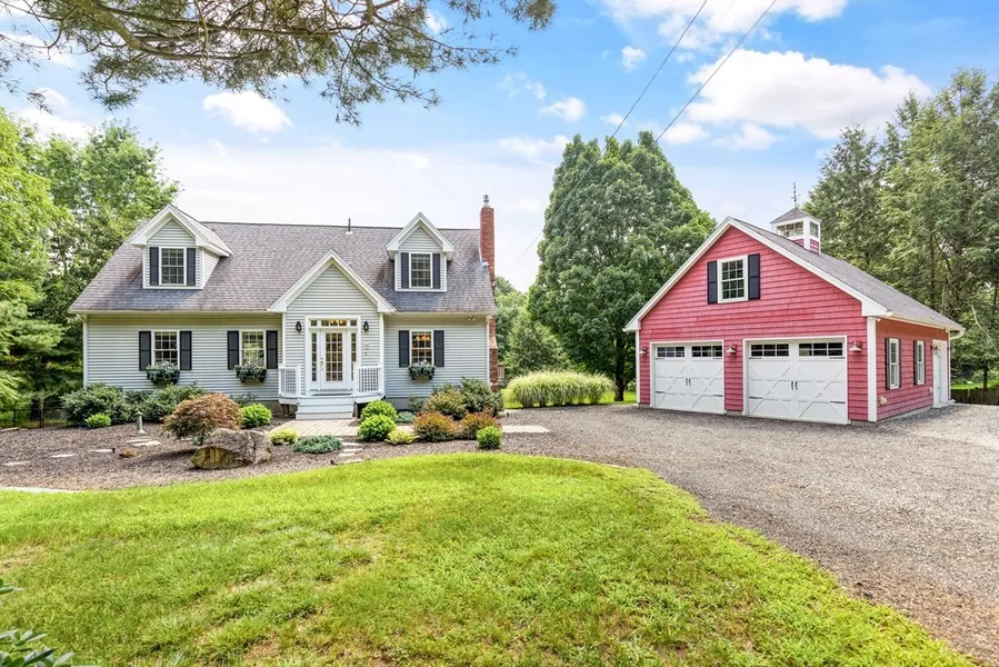 Nestled within 100+ acres of conservation land, escaping the city while living in greater-Boston has never been easier. Enjoy a 1+ acre lot with grassy fenced yard & varied fruit trees. Take the back gate to walking/biking trails leading to nearby Vale, Foster's Pond and Ann Rawlins Green Reservations or to Ballardvale Train, with a ride to Boston in under an hour. Head inside for an oversized living room with office or music room area, 2016 reno'ed kitchen and dining room with gas fireplace. The main level also houses a sunroom and half bath with laundry. Head upstairs to the primary bedroom suite with two sets of built-in closets, window seat reading area and en-suite stone bathroom with double vanity. The two additional bedrooms have generous closets and share a bathroom via the hallway. Downstairs features a family room with mini-split cooling currently fitted as an in-home gym with sauna. The barn-style garage can comfortably house 3+ cars plus ample driveway parking for guests.
