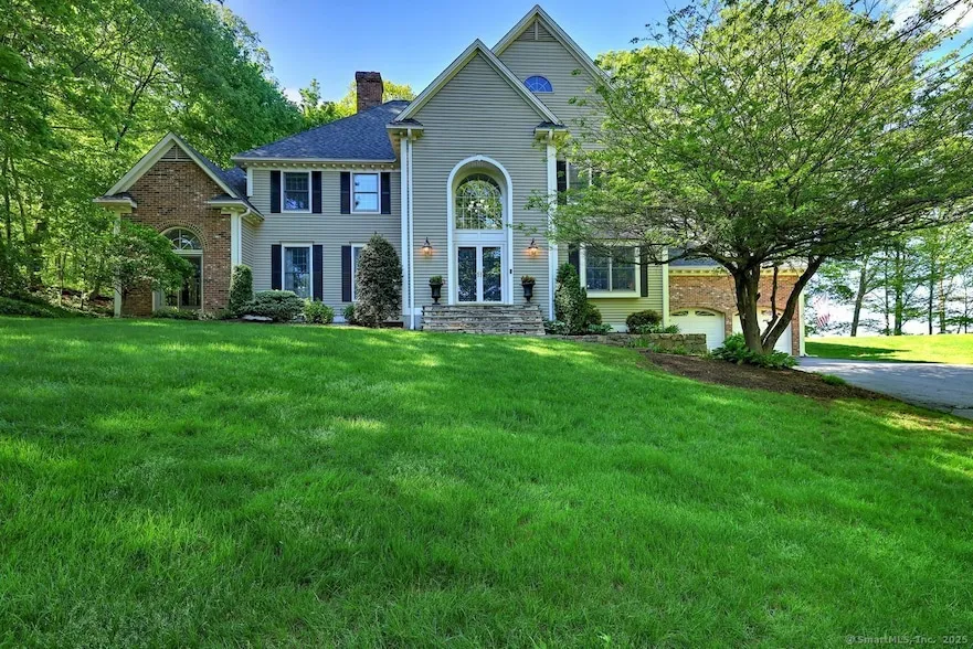 This exceptional Munson-built Colonial offers a rare blend of timeless craftsmanship, thoughtful design, and luxurious detail. From the soaring two-story foyer to the 9-foot ceilings, solid wood doors, custom moldings, and oversized windows, the home's refined character is evident throughout. At the heart of the home is a spacious granite kitchen with a center island and a generous eat-in area that opens to a private stone patio and a beautifully landscaped yard framed by natural stone walls. Light pours into the expansive great room with a striking wood-burning fireplace, and the sun-filled four-season sunroom is ideal for both relaxation and entertaining. The formal dining room flows seamlessly into the sunroom and leads to the elegant living room, anchored by a second impressive fireplace. A richly appointed cherry wood-paneled office with custom built-ins provides a quiet and distinguished workspace. Upstairs, four spacious bedrooms offer gleaming hardwood floors. A dramatic hallway landing adds architectural interest and overlooks the grand foyer. Updated bathrooms feature granite countertops and modern finishes. The luxurious primary suite includes a large walk-in closet, private vanity, and a spa-like bath. Additional features include natural gas heat, a finished lower level adding approx. 1,200 sq ft of versatile living space, and a walk-up attic offering abundant storage.