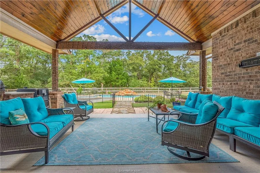 Come see this beautiful home sitting on 1.25 acres inside the peaceful, master-planned community of King Oaks! The open floorplan is great for spending time with family or entertaining your friends. The living room offers wood-like tile flooring, a cathedral ceiling accented with a stained beam, and sliding glass doors that offer park-like views overlooking the covered patio with an outdoor kitchen, a saltwater pool, horseshoe pit, lots of wildlife & birds, a heavily wooded backyard, six fruit trees (lemon, lime, orange, peach. apricot & apple) plus two 6x10 raised garden beds! The incredible kitchen offers two large islands, one with an eating bar, a built-in oven plus a cooktop, stainless steel appliances, granite countertops, custom cabinetry, a wet bar/beverage center with two pull-out drawers, and a spacious dining area. The impressive master bath features double vanities, a large walk-in closet, walk-in shower w/bench seating, separate tub, stained custom cabinetry, & granite counters. Some bonus features are the oversized two-car garage with floored ceiling storage, automated sprinklers with WIFI connectivity, and the automatic decorative lighting across the front and the back of the property. There is also a community pool, and two community fishing ponds stocked with Largemouth Bass and Catfish. You do NOT want to miss this one! Call to schedule your private showing today!!
