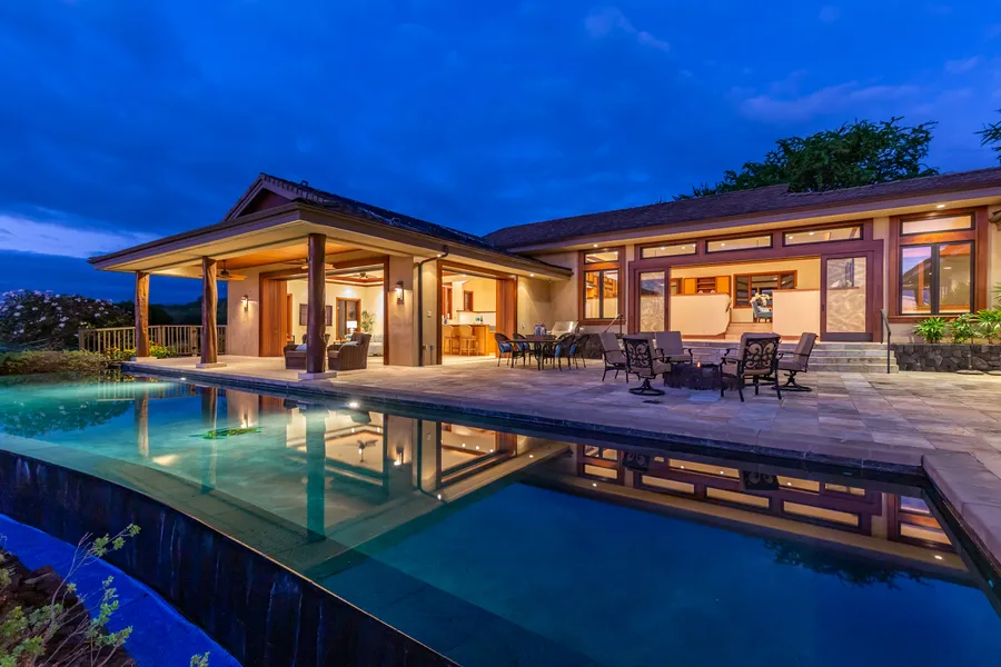 81-580 Kaiue St, Kealakekua, HI 96750 Become part of Hokuli'a and enjoy life in what is increasingly acknowledged as "the most desirable private oceanfront golf community in the world." This outstanding estate property is located in the private and exclusive community of Hokuli'a. This custom home features the finest 180-degree panoramic ocean, shoreline and golf course views from nearly every room. With a magnificent open floor plan of over 5,000 sq. ft. of interior space, over 2,300 sq. ft. of exterior lanais, the free-flowing floor plan of this 4-bedroom, 4.5 bath property lends itself to enjoying Hawaiis ideal climate, indoor-outdoor lifestyle, and stunning daily sunsets. The great room features a wet bar, fully pocketing doors on two walls which open to the swimming pool and the main lanai with fire pit and outdoor kitchen. This is the perfect spot to entertain and enjoy the panoram...