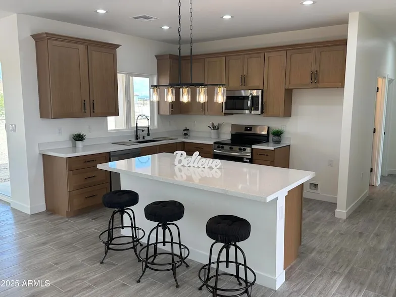 BRAND NEW BUILD! Ready by End of August! This 4 bed, 2 bath home sits on a spacious 1.25-acre lot with mountain views and room for RVs, toys, or horses. Enjoy an open floorplan with tall ceilings, wood-look tile throughout, and tons of natural light. The kitchen will feature stainless steel appliances, quartz counters, a large island with breakfast bar, and beautiful natural wood cabinetry. The split floor plan offers a private primary suite with a walk-in closet and dual sinks. Relax under the covered patio and bring your backyard vision to life. No HOA!