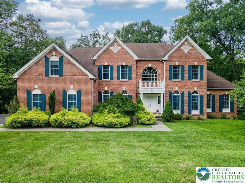 Stunning 6-bed, 4.5-bath brick-front Colonial nestled in prestigious Estates at Great Bear. Gleaming HW flrs guide you thru an elegant main lvl feat formal LR & DR w/plush wall-to-wall carpet & Palladian arch windows. Dbl drs open to a conservatory w/vaulted ceilings, recessed lts & bright windows. The 2-story FR showcases HW flrs, recessed lts & cozy brick gas fireplace framed by more Palladian windows, filling the space with natural light. The modern eat-in kitchen is a chef s dream, boasting granite counters, stainless stl apps, a tiled backsplash, wall oven, recessed lts & a ctr island w/bfast seating. The adjoining eating area provides access to the walkout Trex deck, where you ll enjoy panoramic mountain views perfect for outdoor dining & relaxing. Upstairs, the luxurious master ste feat plush carpeting, detailed moldings, recessed lts, a spacious walk-in closet w/custom shelving & a serene sitting area. The en-ste master bath is equally impressive w/tile flrs, vaulted ceilings, 2 vanities, a tiled walk-in shower & a linen closet. Princess ste, 2 add'l nice-sized beds & a Jack/Jill bath complete the 2nd lvl. The fully finished walkout basement adds living space w/LG rec area feat LVP flrs, recessed lts & a partially carpeted section ideal for lounging or entertaining. 2 add'l beds, full bath & versatile sitting rm or office provide endless flexibility. Close to US-209 & I-80 for easy commute, Shawnee Mountain Ski Area, Great Bear Golf Club, shops, restaurants & more!