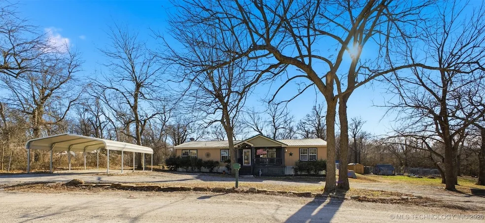 Welcome to your own private retreat just outside Sulphur, where space, comfort, and functionality are perfectly aligned. This 3-bedroom, 2-bath home sits on 1.25 acres, offering privacy, versatility, and peace of mind.?Inside, the open-concept floor plan showcases a large living room with a cozy fireplace, flowing seamlessly into a spacious kitchen complete with a large pantry.?& built-in office desk. The split floor plan provides ideal separation, featuring a generously sized primary suite that feels like a true retreat. The primary bathroom includes his-and-her sinks, a soaker tub, a tiled walk-in shower, and a walk-in closet that conveniently connects directly to the laundry room.?Outside you ll find a property designed to do it all. The chain-link fenced backyard includes a deck perfect for relaxing, two storage sheds (8x12 and 12x12), and a hobby house with its own bathroom, already prepped for a mini-split system, but does have one window unit ideal for a home office, guest space, or creative studio. The land is dotted with apple, peach, lemon, and lime trees, and the property extends beyond the creek, offering added privacy and usable space.?To top it off, this home includes a storm cellar, providing extra peace of mind during Oklahoma weather. With total electric, abundant outdoor features, and a quiet location just outside town, this property offers a quiet setting with plenty of space to spread out.