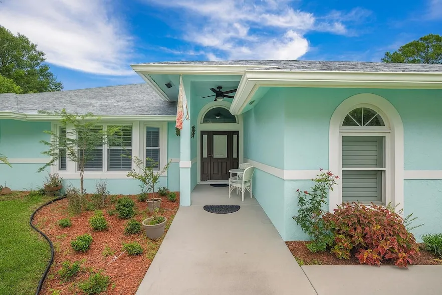 Experience the best of both worlds with this beautifully maintained pool home in Jupiter Farms--offering peaceful country living just minutes from all the conveniences of town. This versatile 4-bedroom, 3-bath layout is ideal for multi-generational living or potential rental income. The attached efficiency apartment features a private entrance, full kitchen with stainless steel appliances, vinyl flooring, quartz countertops and its own HVAC system. The main residence is a 3-bedroom, 2-bath split floor plan with a 2-car garage, high vaulted ceilings, LED lighting, and great natural light. The open kitchen overlooks the beautiful pool and travertine patio, perfect for entertaining. The primary suite includes a private office, walk-in closet, soaking tub, separate shower, and dual vanities.