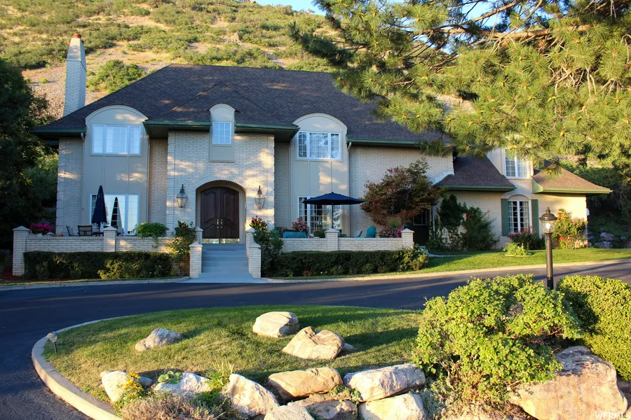Featuring ~ French Country Architectural Design, Gorgeous Spiral Stair case leads to 3 Master Suites, 4th Bedroom hosts French Doors to private balcony and mother nature's Pallet of 1.25 ACRES.. Rare Opportunity WEBER BASIN ALLOTMENT of 1Million Gallons of Water a year will Be Included. .Home is an ART Piece with Mastered Woodwork, Vaulted/Raised Ceilings throughout. Experience The Craftsman's expertise Touch of detail, hosting Pride in Perfection. Spacious open Floor plan flows Throughout the Incredible blue print of Home.. Perfect for Entertaining, Holiday Guests, Memorable Visits or Settle in the the Gathering Room/Den for a Quiet Evening's in front of the Big Screen. Tucked in The Custom Entertainment Cabinet with the Touch of Willy Nelson's Carpenter who Also Built the Martha Stewart Design, Center Island showcased in the Master Cooks Kitchen. Formal living Room, Formal Dining, Eat ...