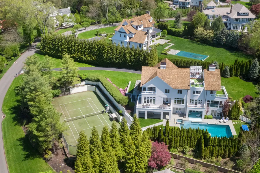 Enjoy breathtaking, direct Long Island Sound views and a resort lifestyle with your own private, oversized pool, lighted tennis court, privacy and beach access at this stunning and sophisticated Compo Beach home. Set high on a hillside on prestigious Minute Man Hill, this stylish home offers a singular beach lifestyle with an easy stroll to Compo Beach and the Longshore Club. Take in the spectacular sunsets from the home's 5 balconies and spacious roof deck. Enter this impressive home and note dramatic architecture, soaring ceilings and showstopping moments at every turn. The all-new kitchen was designed by Tanner White and offers the perfect complement of Wolf, Bosch and Subzero appliances, custom cabinetry and an open plan perfectly suited for family and entertaining. With 6 bedroom suites, the home's layout offers flexibility for guests and working from home. The master suite impresse...